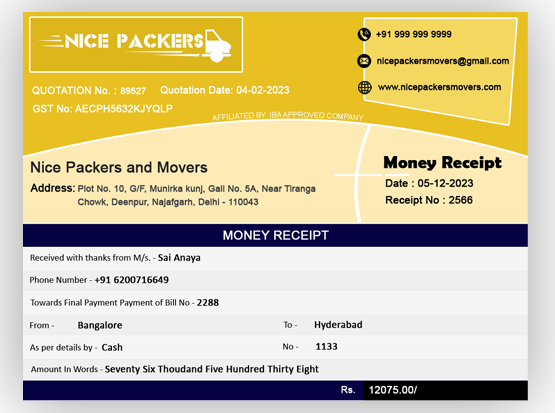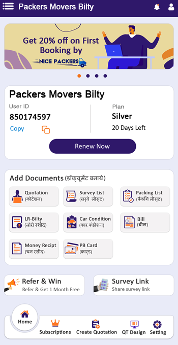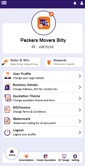 Use Packers Movers Bilty App (PMB) to create stylish quotation, bill, LR (Lorry Receipt), Article List, Car Condition, Money Receipt, and NOC for your packers and movers business and share with anyone anytime.